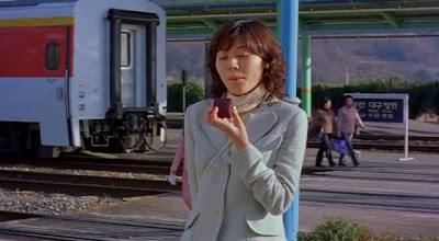 Young Ju berlari mengejar kereta itu.Hei...tasku...tasku....Hee chul yang juga baru duduk di kereta tak mengerti apa yang diucapkan young ju.Young ju menunjuk tas kecilnya.lempar Tasku...tasku...disitu.